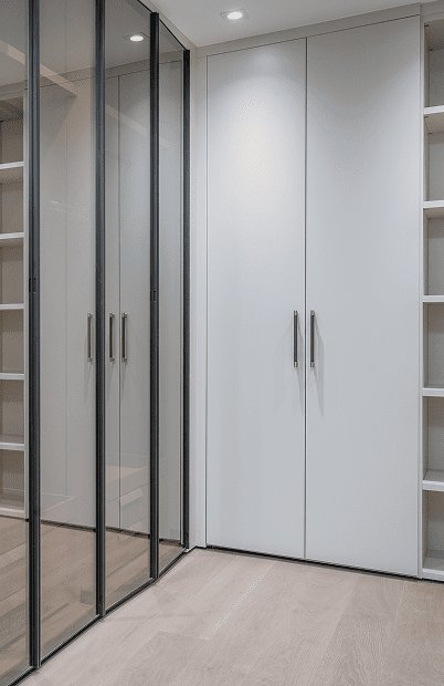 Sliding doors glide effortlessly, creating a refined, uninterrupted flow that enhances modern wardrobe style and space.