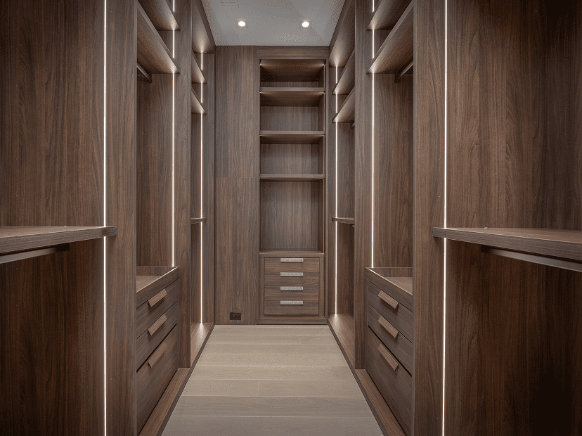 A walk-in closet transforms storage into a luxury experience, blending Italian design, space, and timeless elegance.